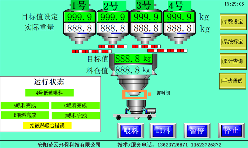 發揮單片機高精度數據采集處理和PLC智能邏輯控制的優勢進行互補,具有美觀易懂的人機交互界面。適合中小型無塵環保配料的行業。