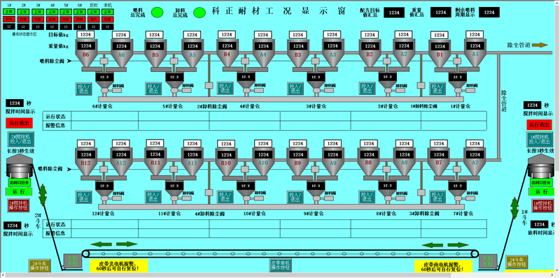 本公司擁有優良的生產設備和技術開發團隊,以良好的管理模式,豐富的生產和設計經驗為環保工作做出了的一定的貢獻。主要針對鋼鐵、耐材等行業無塵環保配料工藝的改進,設計和生產全自動化無塵配料設備。除塵部分分為:集中式收塵和分散式收塵。計量部分分為:增量計量和減量計量控制模式。控制部分分為:純單片機控制、單片機加PLC控制、純PLC控制。